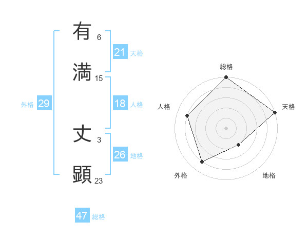 有満 丈顕さんの総格は47画の5点!