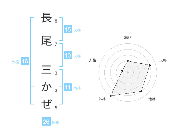 長尾 三かぜさんを姓名の画数から五運を鑑定