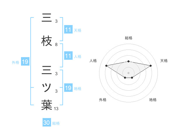三枝 三ツ葉さんを姓名の画数から五運を鑑定