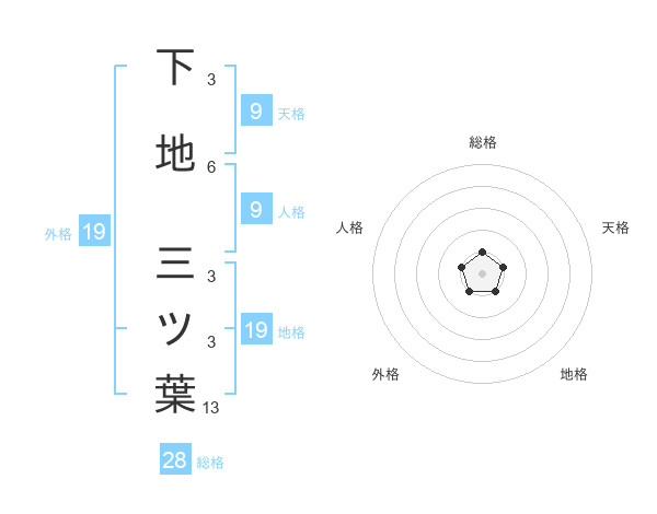 下地 三ツ葉さんの外格は19画の1点!