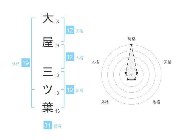 大屋 三ツ葉さんを姓名の画数から五運を鑑定
