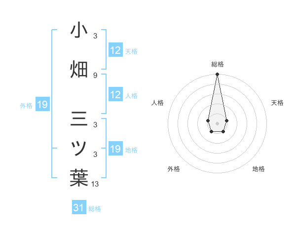 小畑 三ツ葉さんを姓名の画数から五運を鑑定