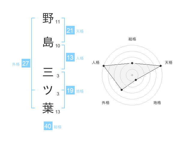 野島 三ツ葉さんを姓名の画数から五運を鑑定