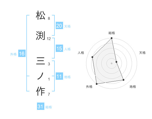 松渕 三ノ作さんを姓名の画数から五運を鑑定