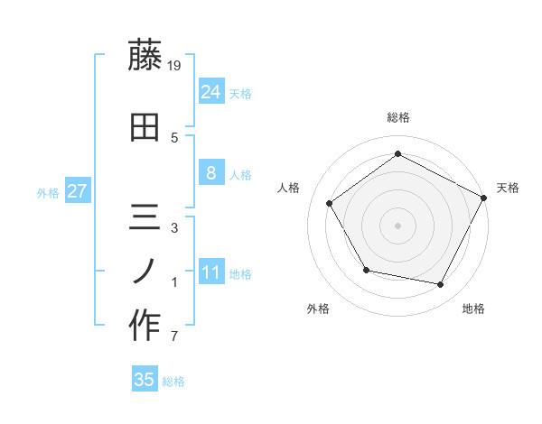藤田 三ノ作さんを姓名の画数から五運を鑑定