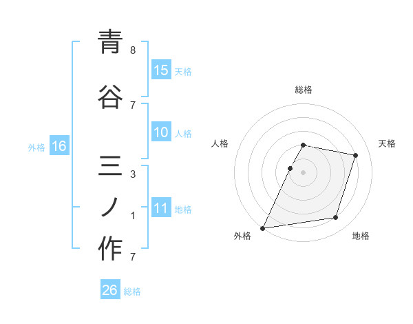 青谷 三ノ作さんを姓名の画数から五運を鑑定