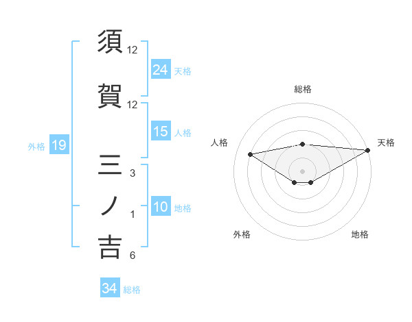 須賀 三ノ吉さんの総格は34画の2点!