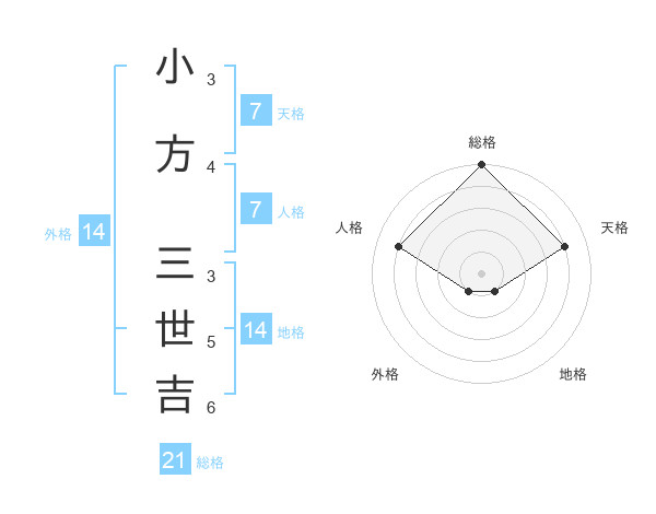 小方 三世吉さんを姓名の画数から五運を鑑定