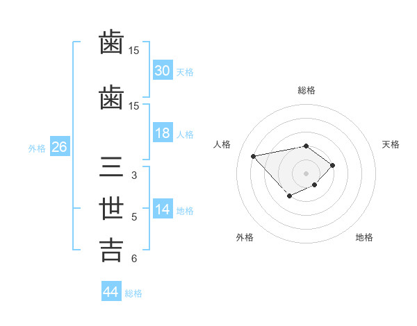 歯歯 三世吉さんを姓名の画数から五運を鑑定