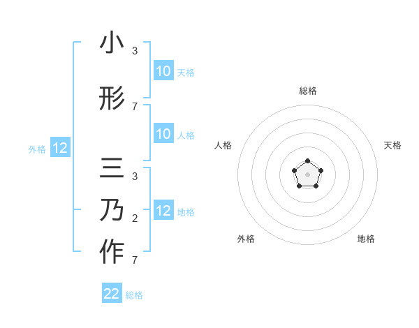 小形 三乃作さんの総格は22画の1点!