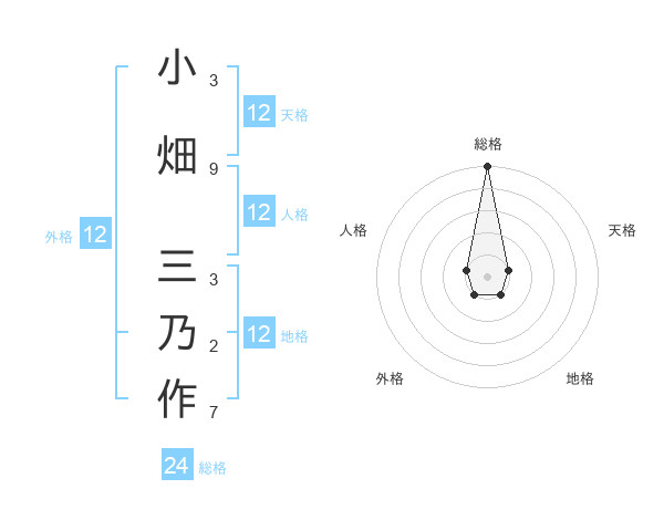 小畑 三乃作さんを姓名の画数から五運を鑑定