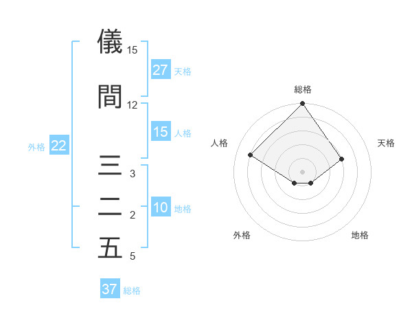 儀間 三二五さんの総格は37画の5点!