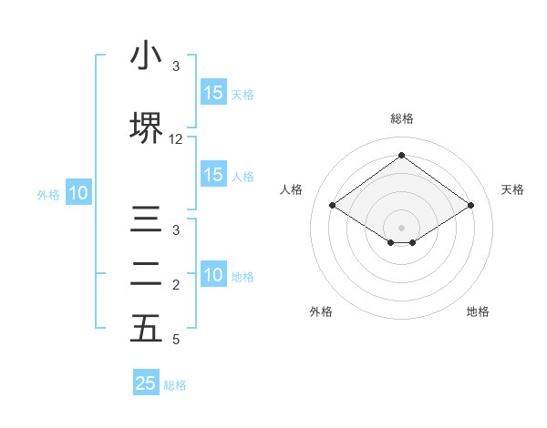 小堺 三二五さんを姓名の画数から五運を鑑定