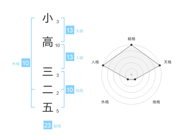小高 三二五さんの総格は23画の5点!