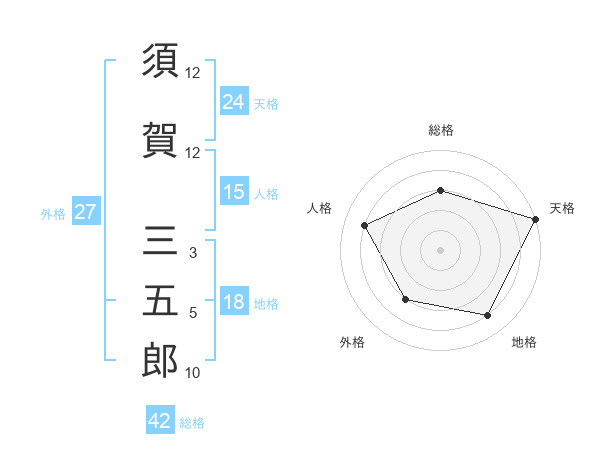 須賀 三五郎さんを姓名の画数から五運を鑑定