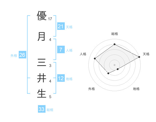 優月 三井生さんの総格は33画の4点!