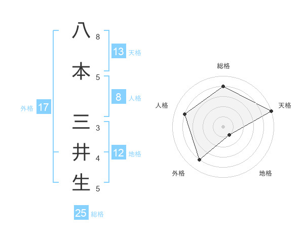 八本 三井生さんの総格は25画の4点!