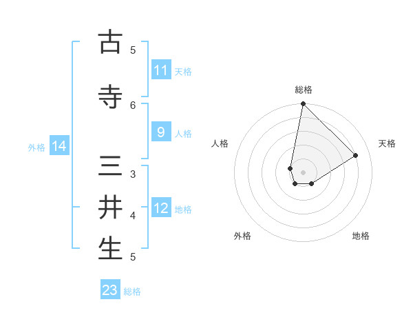 古寺 三井生さんを姓名の画数から五運を鑑定