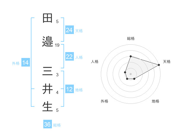 田邉 三井生さんを姓名の画数から五運を鑑定