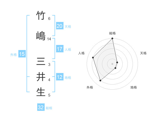竹嶋 三井生さんの総格は32画の5点!