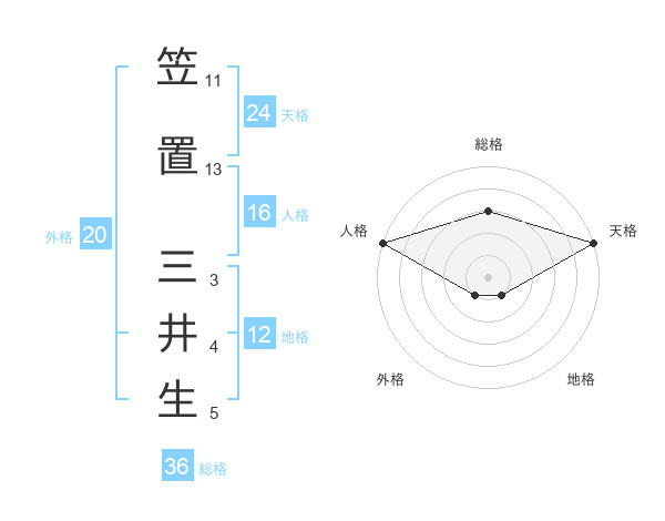 笠置 三井生さんを姓名の画数から五運を鑑定