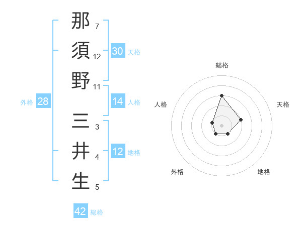 那須野 三井生さんを姓名の画数から五運を鑑定