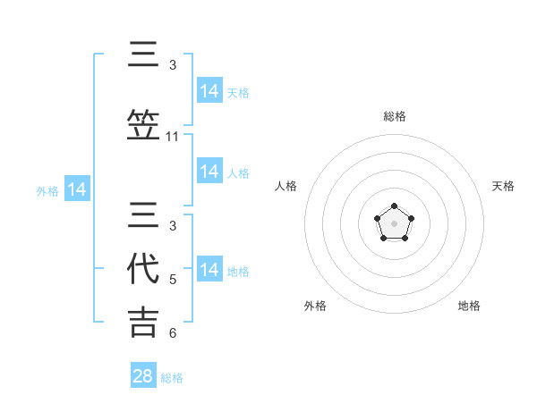 三笠 三代吉さんを姓名の画数から五運を鑑定