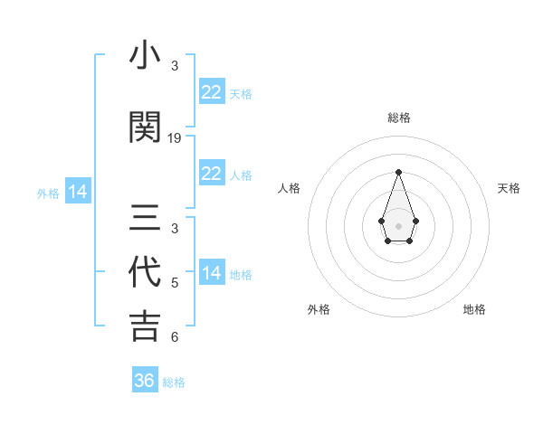 小関 三代吉さんを姓名の画数から五運を鑑定
