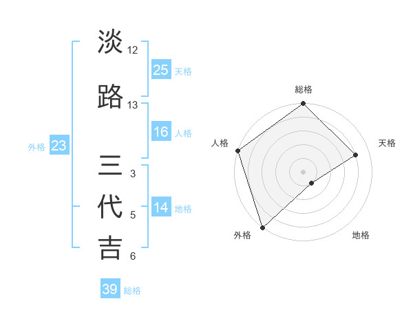 淡路 三代吉さんを姓名の画数から五運を鑑定