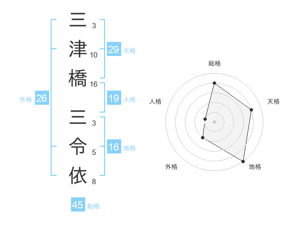 三津橋 三令依さんの総格は45画の4点!