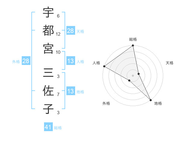 宇都宮 三佐子さんを姓名の画数から五運を鑑定