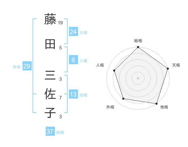 藤田 三佐子さんの総格は37画の5点!