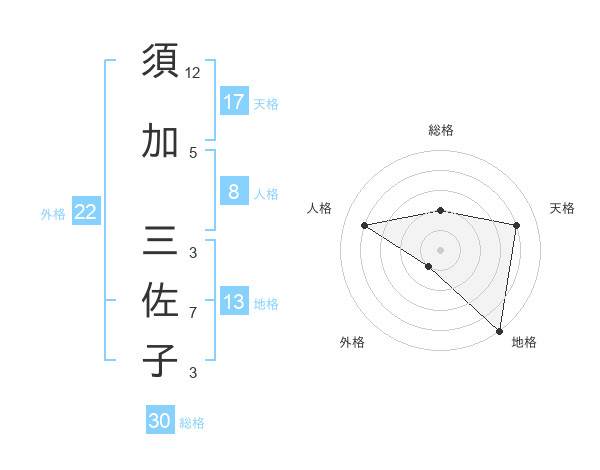 須加 三佐子さんを姓名の画数から五運を鑑定