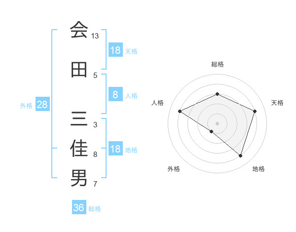 会田 三佳男さんを姓名の画数から五運を鑑定