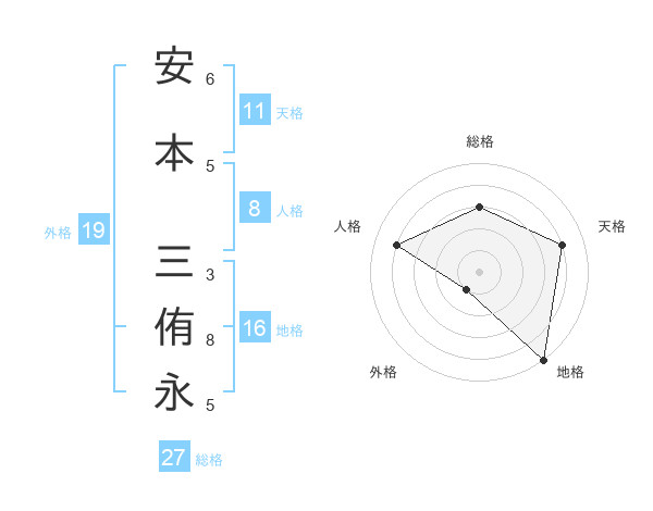 安本 三侑永さんの総格は27画の3点!