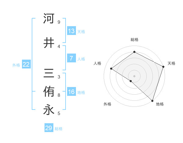 河井 三侑永さんの総格は29画の4点!