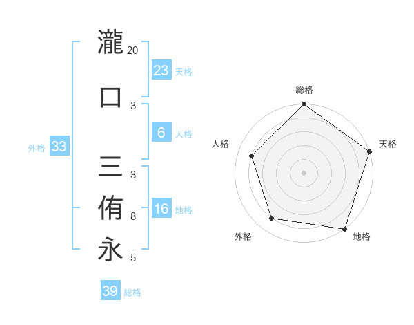 瀧口 三侑永さんを姓名の画数から五運を鑑定