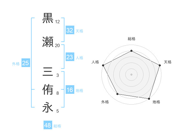 黒瀬 三侑永さんの総格は48画の4点!