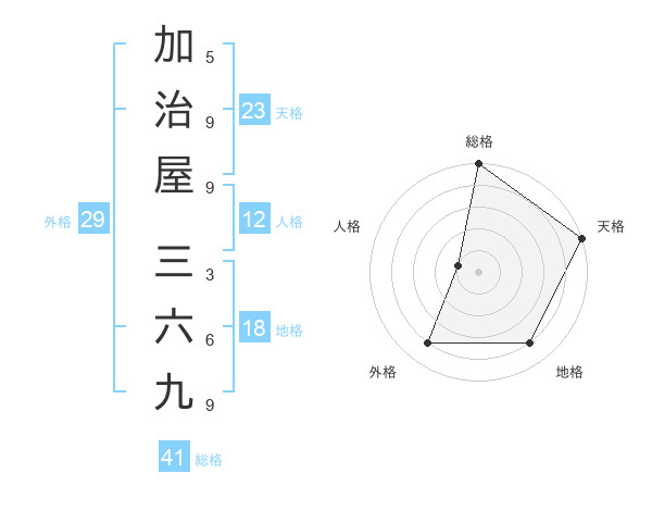 加治屋 三六九さんを姓名の画数から五運を鑑定