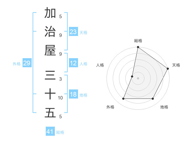 加治屋 三十五さんを姓名の画数から五運を鑑定