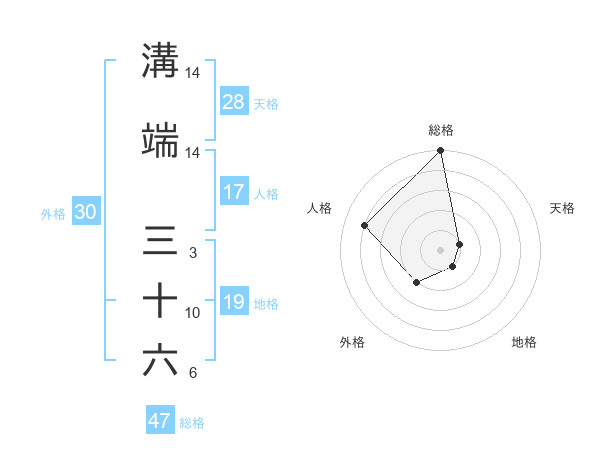 溝端 三十六さんの総格は47画の5点!