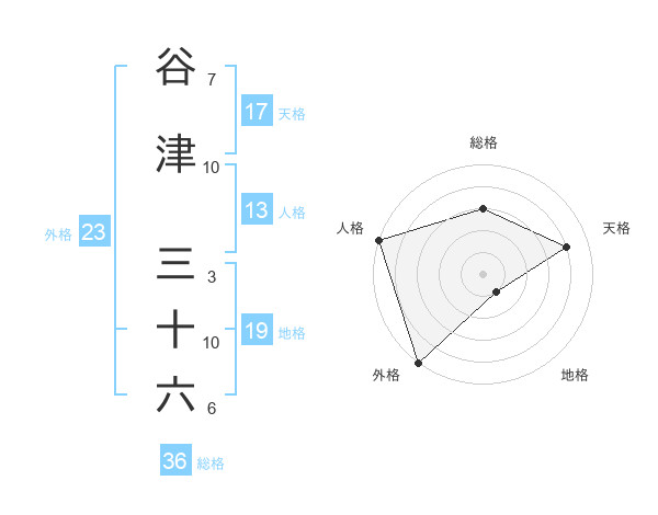 谷津 三十六さんを姓名の画数から五運を鑑定