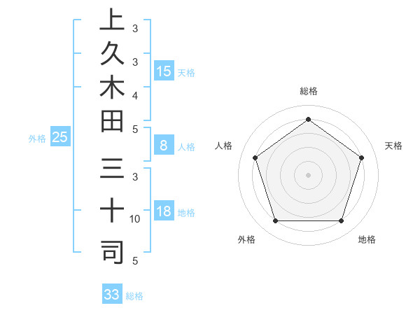 上久木田 三十司さんを姓名の画数から五運を鑑定