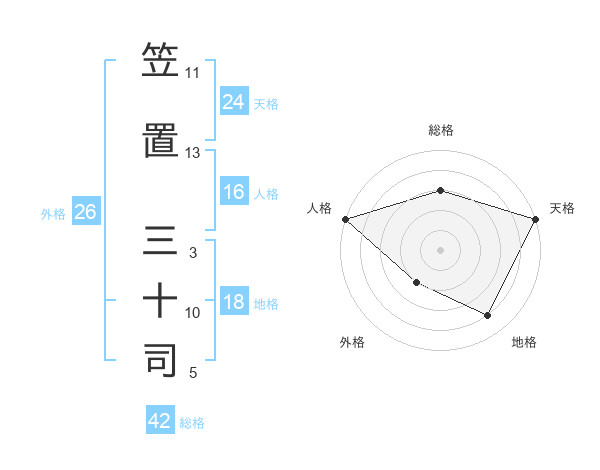 笠置 三十司さんの総格は42画の3点!