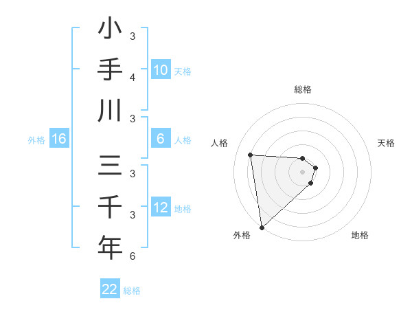 小手川 三千年さんを姓名の画数から五運を鑑定