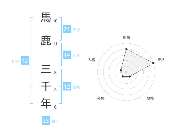 馬鹿 三千年さんを姓名の画数から五運を鑑定