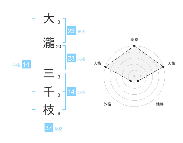 大瀧 三千枝さんを姓名の画数から五運を鑑定