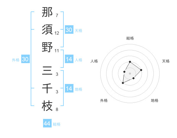 那須野 三千枝さんを姓名の画数から五運を鑑定