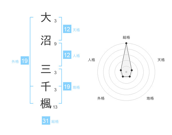 大沼 三千楓さんを姓名の画数から五運を鑑定