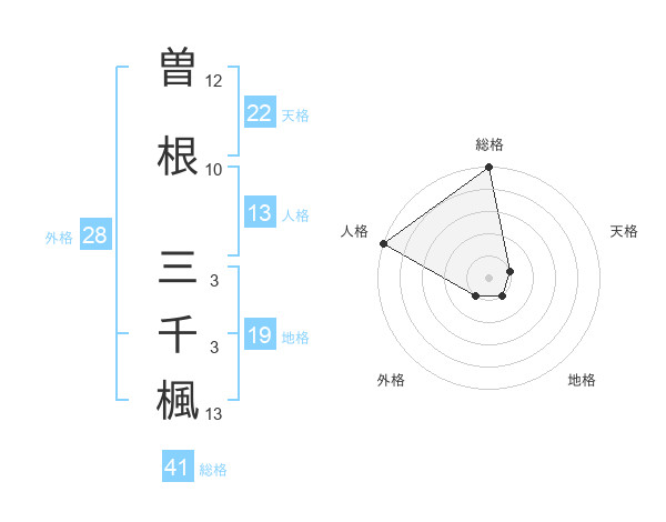 曽根 三千楓さんの総格は41画の5点!